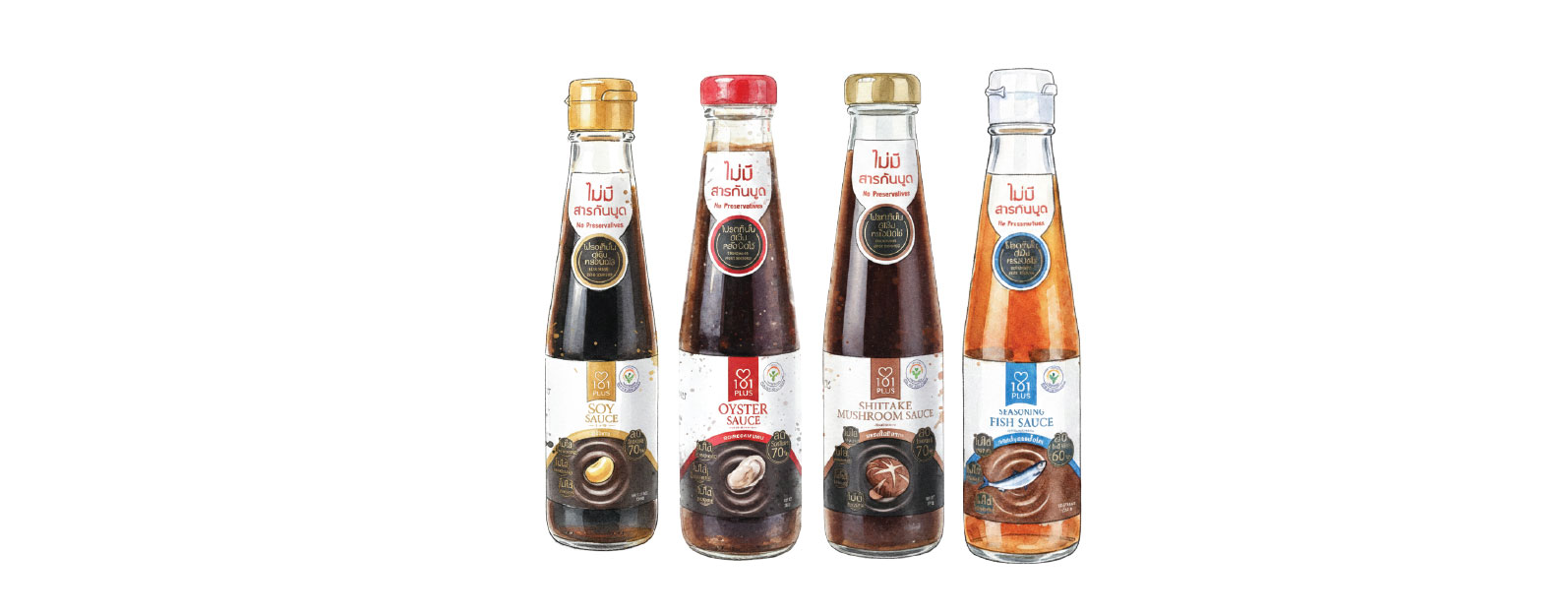 • ซอสปรุงรสน้ำปลา ลดโซเดียม 60% ทำจากปลากะตักแท้ที่สกัดเอาแต่ความหอม ลดกลิ่นคาว แต่ยังคงเอกลักษณ์ไทย