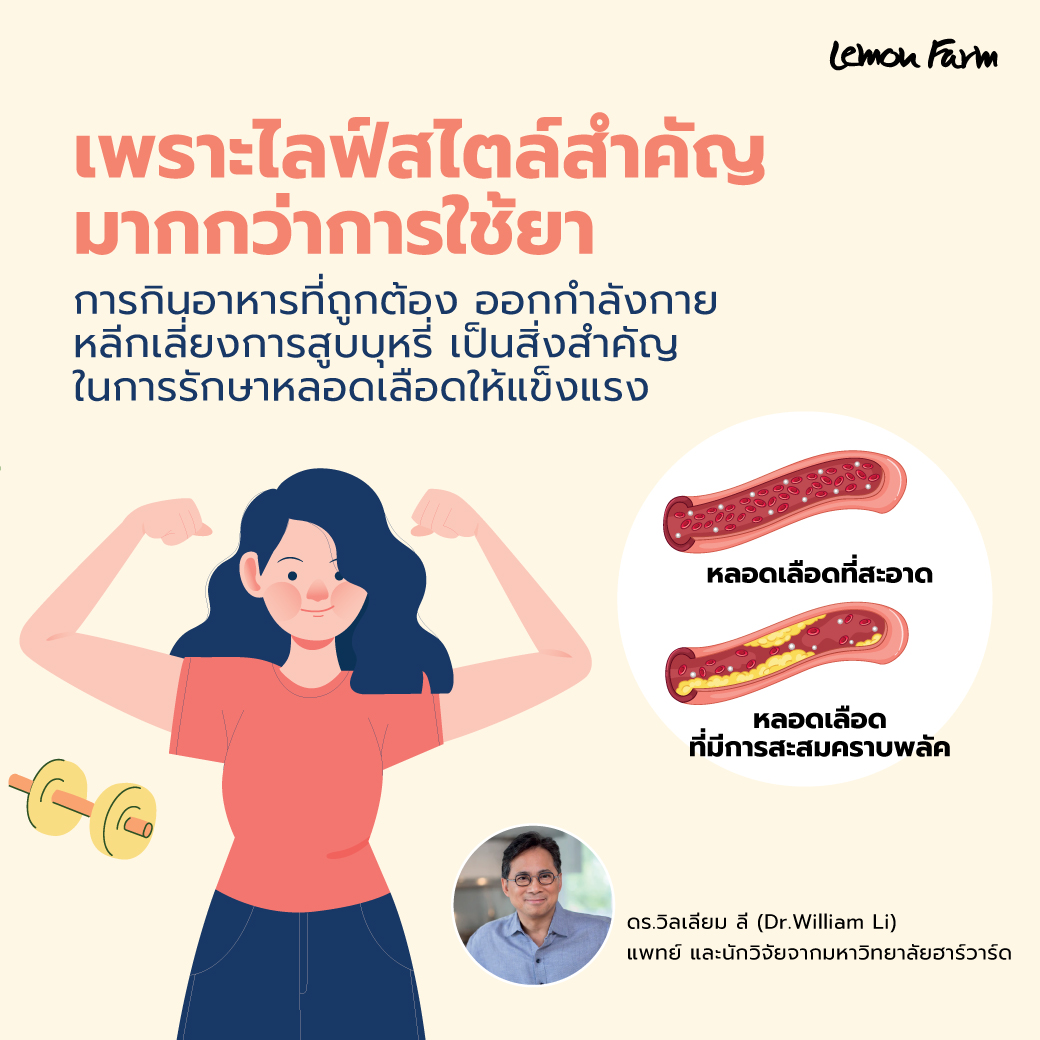 ดร.วิลเลียม ลี (Dr.William Li) แพทย์ และนักวิจัยจากมหาวิทยาลัยฮาร์วาร์ดเน้นย้ำว่า “อาหาร” เป็นกุญแจสำคัญสามารถฟื้นฟูความเสียหายต่อหลอดเลือด ลดคอเลสเตอรอลและปรับปรุงสุขภาพหัวใจโดยรวมได้ โดยไม่ต้องพึ่งยากลุ่มสแตติน