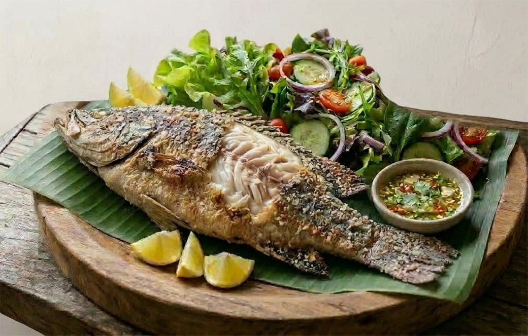 เมนูแนะนำ: ปลากะพงย่างเกลือ + สลัดผัก