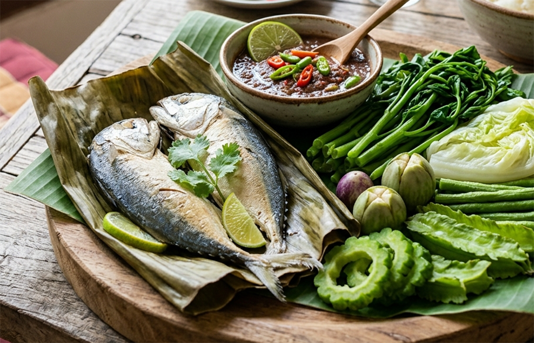 เมนูแนะนำ: ปลาทูนึ่ง + ผักลวก + น้ำพริกมะนาว