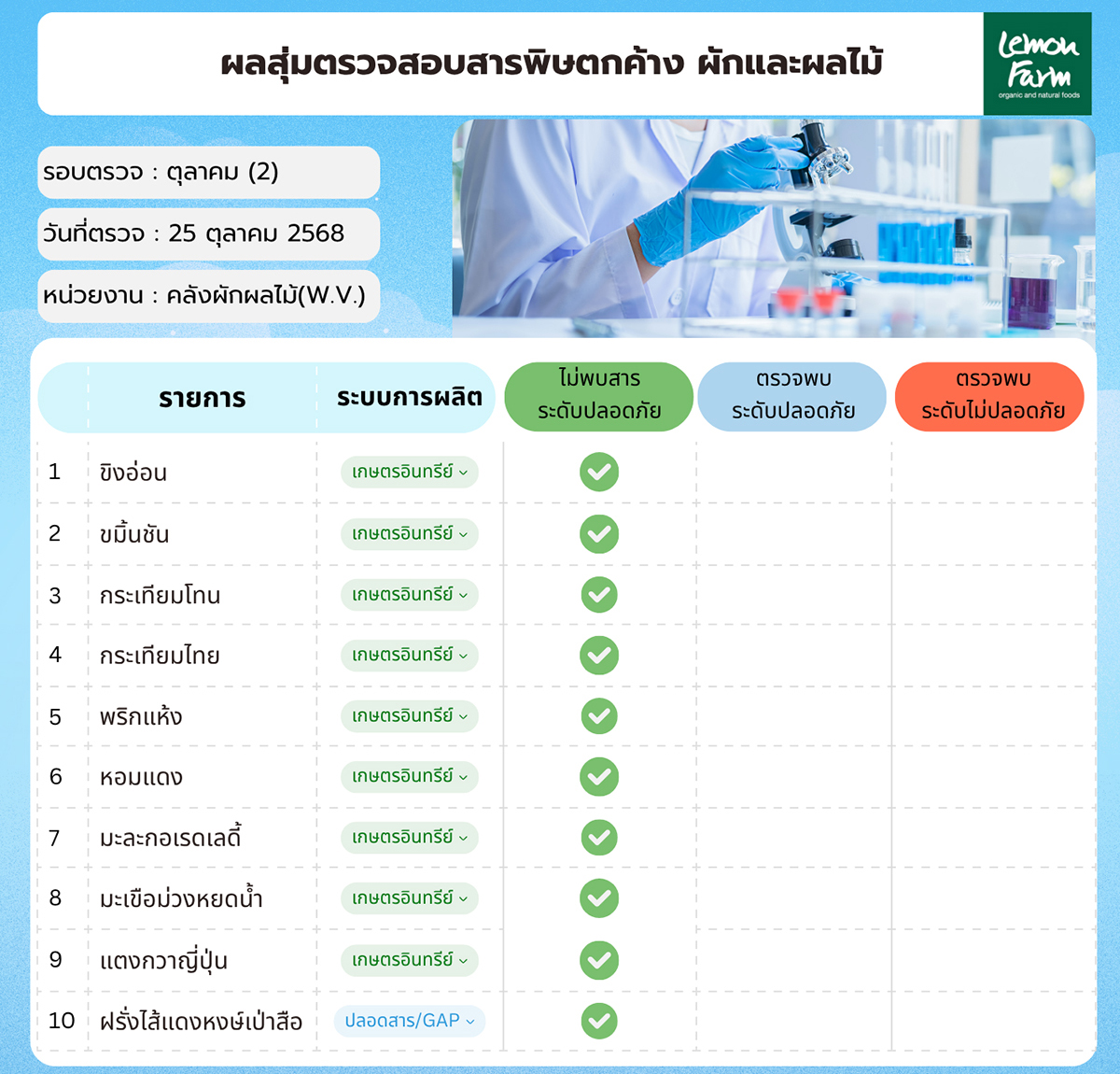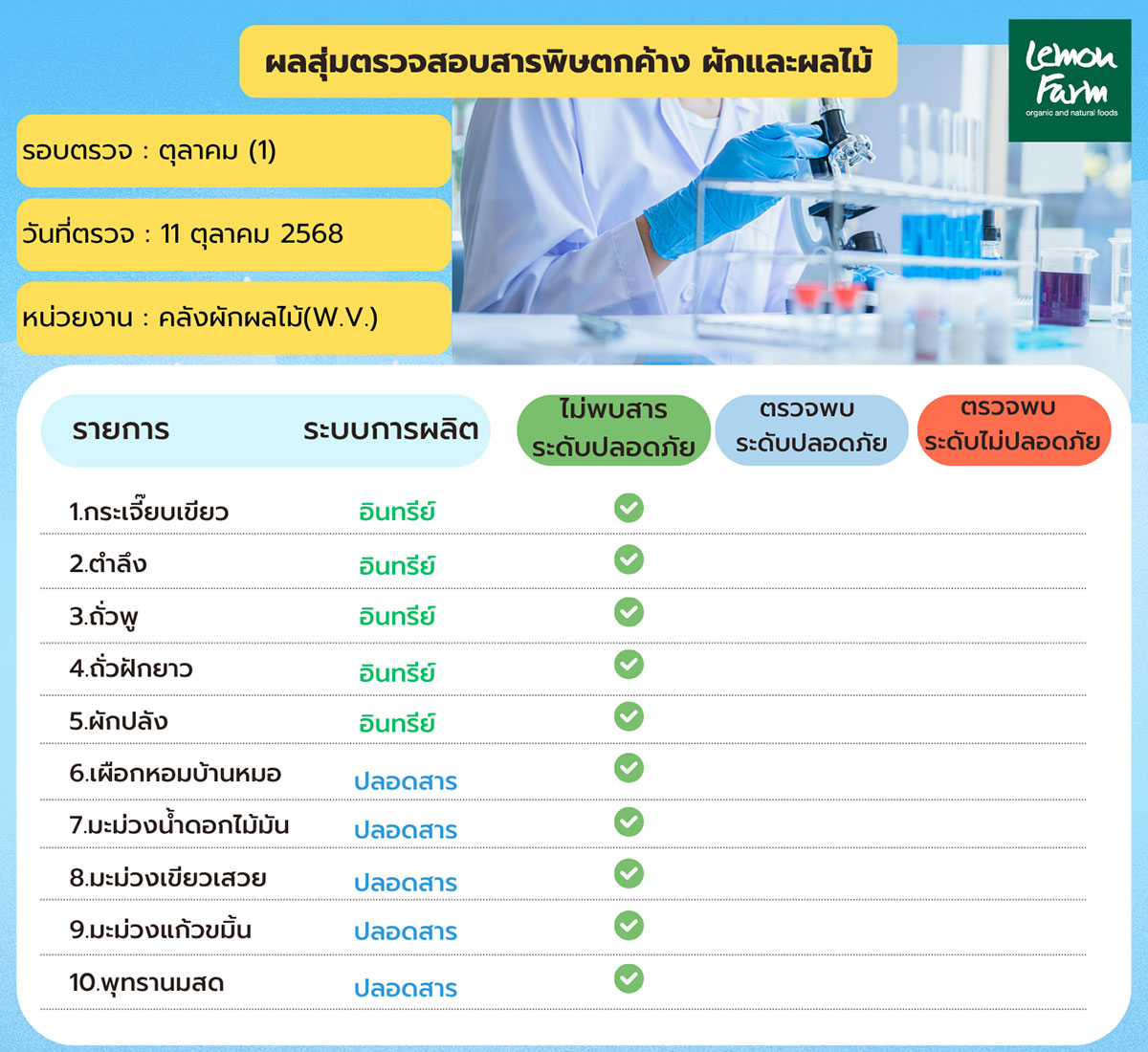 ผลสุ่มตรวจสอบสารพิษตกค้าง ผักและผลไม้