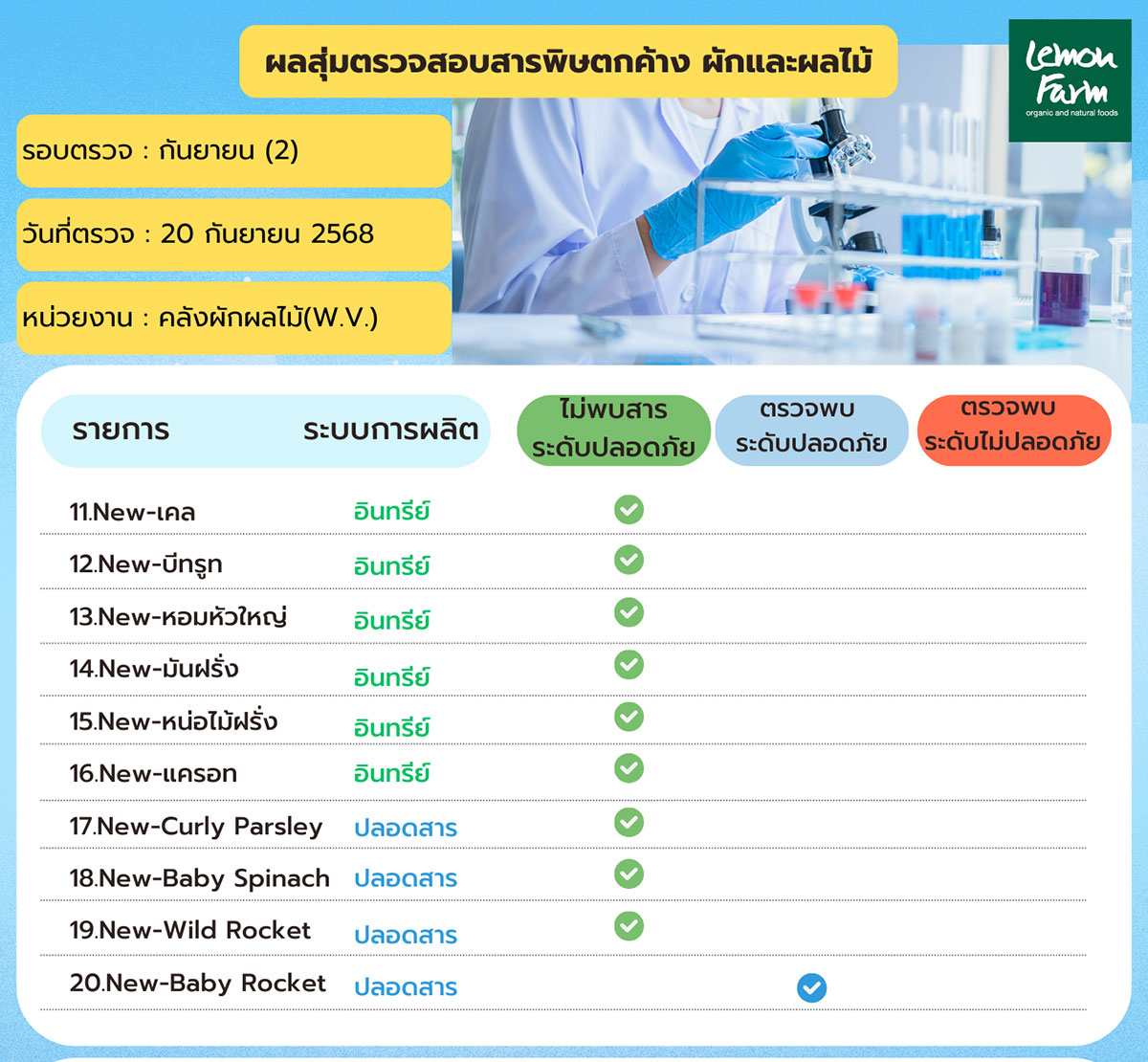 2.ตรวจพบ ในระดับปลอดภัย หมายถึง พบสารสารประกอบฟอสเฟต และคาร์บาเมทอยู่ในเกณฑ์ที่กฎหมายกำหนดให้มีได้ในอาหารหรือผลิตภัณฑ์เกษตร (สินค้าปลอดภัยจากสารพิษ/GAP)