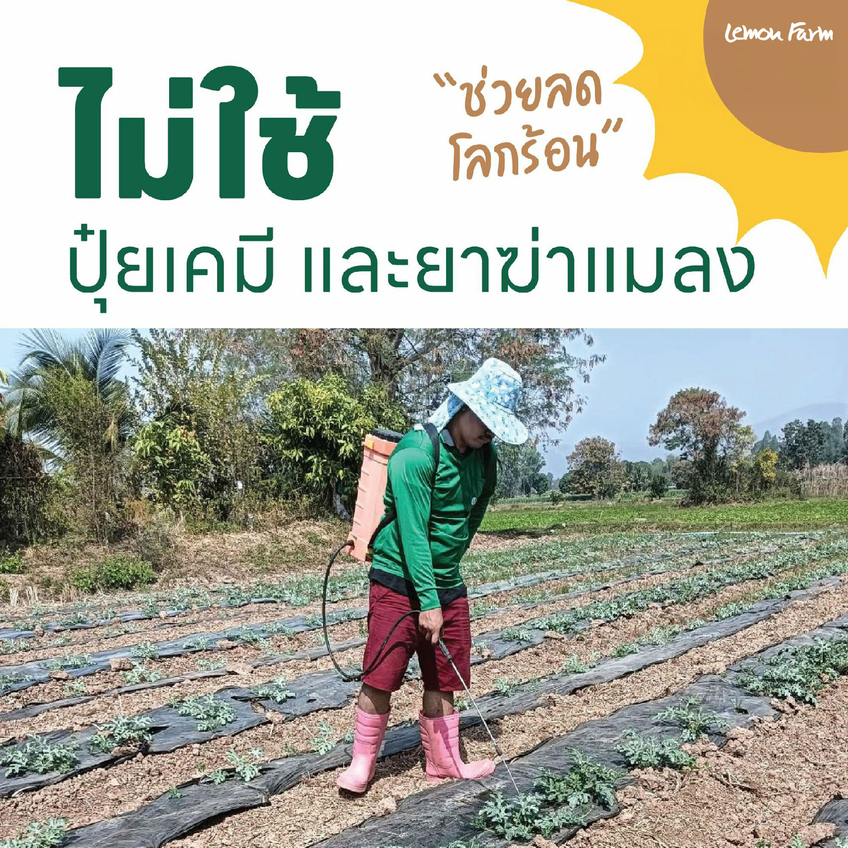 งานวิจัยพบว่า การนำขยะอาหารไปหมักแทนการฝังกลบช่วยลดการเกิดก๊าซเรือนกระจกได้ถึง 5 เท่า เลมอนฟาร์มได้ร่วมเป็นจุดเริ่มต้นเล็ก ๆ ในการลดขยะอาหาร (Food Waste) โดยมอบเศษหัวและไส้ปลาซาบะที่ไม่ถูกใช้งานจากครัว Lemon Farm Healthy Kitchen ให้พี่ ๆ เกษตรกร PGS จ.ชัยภูมิ ใช้ทำน้ำหมักปลาสูตรพิเศษในการบำรุงผลแตงโมหลังจากติดดอก จนทำให้แตงโม Organic ของพี่ ๆ เนื้อแน่น กรอบ หวานฉ่ำสุดสุดค่ะ